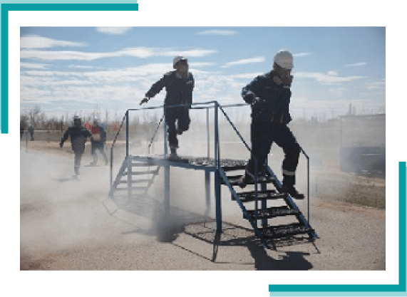 1. Cross a 100-meter obstacle course and extinguish burning liquid with a powder fire extinguisher and a fireproof fabric:First, the full team passes a labyrinth; second, they activate Dräger breathing apparatus and pass through a smoke area by a catwalk; and, third, the team shuts the gate-valve off and then proceeds to extinguish the fire. The exercise is considered completed when all fires are extinguished and the last team member crosses the finish line. 2. Extinguish fire using a fire hydrant (FH): all the team members start running, approach a fire hydrant, stretch a hose line, open the faucet valve and start the water in the line, and proceed to extinguish the fire using a fire-hose monitor.The fire is imitated by a specially designed target.The team must fill a 10-liter tank by directing a jet of water into the target orifice (a fire front). The exercise is considered to be complete after a beacon is activated and the target sound alarm speaks-on.The fire is an unpredictable and destructive phenomenon. If no steps are made to put it out at the initial stage, it may spread in many directions quickly and uncontrollably, becoming a large-scale fire.